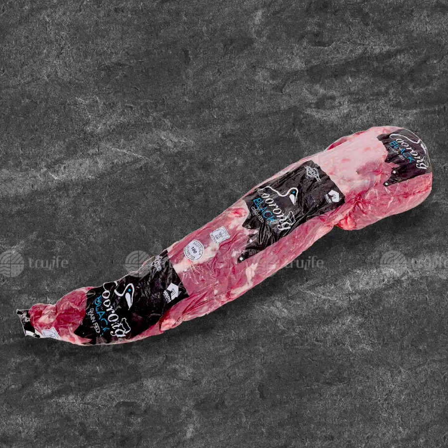 Coorong Black Australian Beef Tenderloin (100 days grain-fed) is the softest, most delicious, and most valuable cut of all beef, located deep near the end of the short loin. This position experiences almost no movement, allowing the meat to achieve absolute tenderness and fine texture.